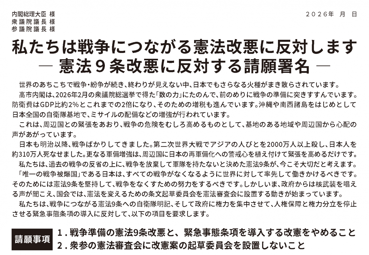 ― 憲法9条改悪に反対する請願署名 ―
