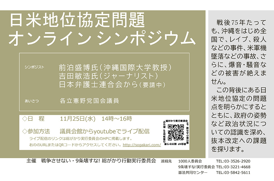この背後にある日米地位協定の問題点を明らかにするとともに、政府の姿勢など政治状況についての認識を深め、抜本改定への課題を探ります。