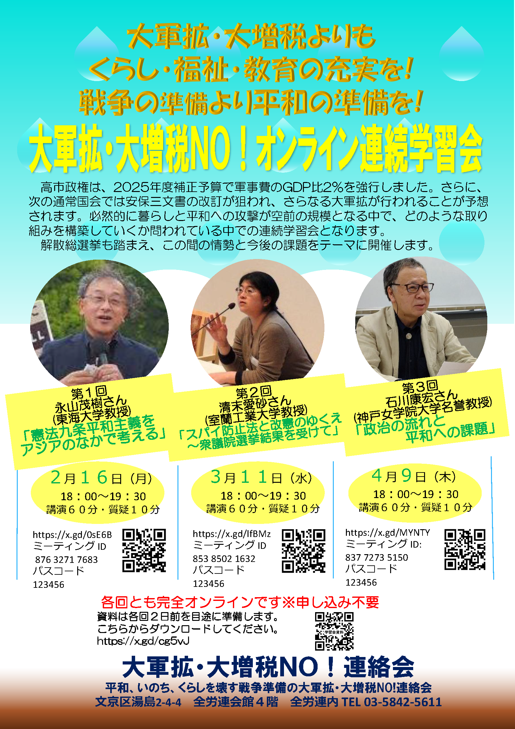 大軍拡・大増税NO!オンライン連続学習会開催(申込不要)